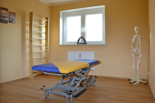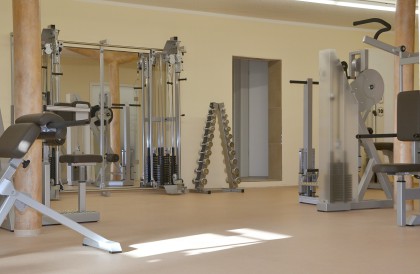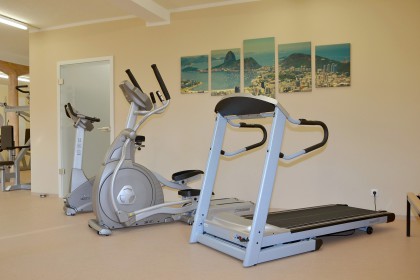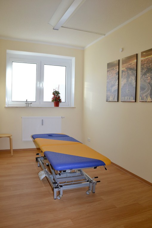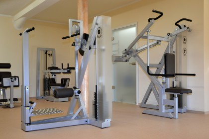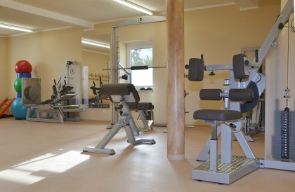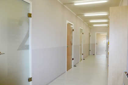 Breiter Flur zu den abgeschlossenen Behandlungsräumen und zum Gerätepark